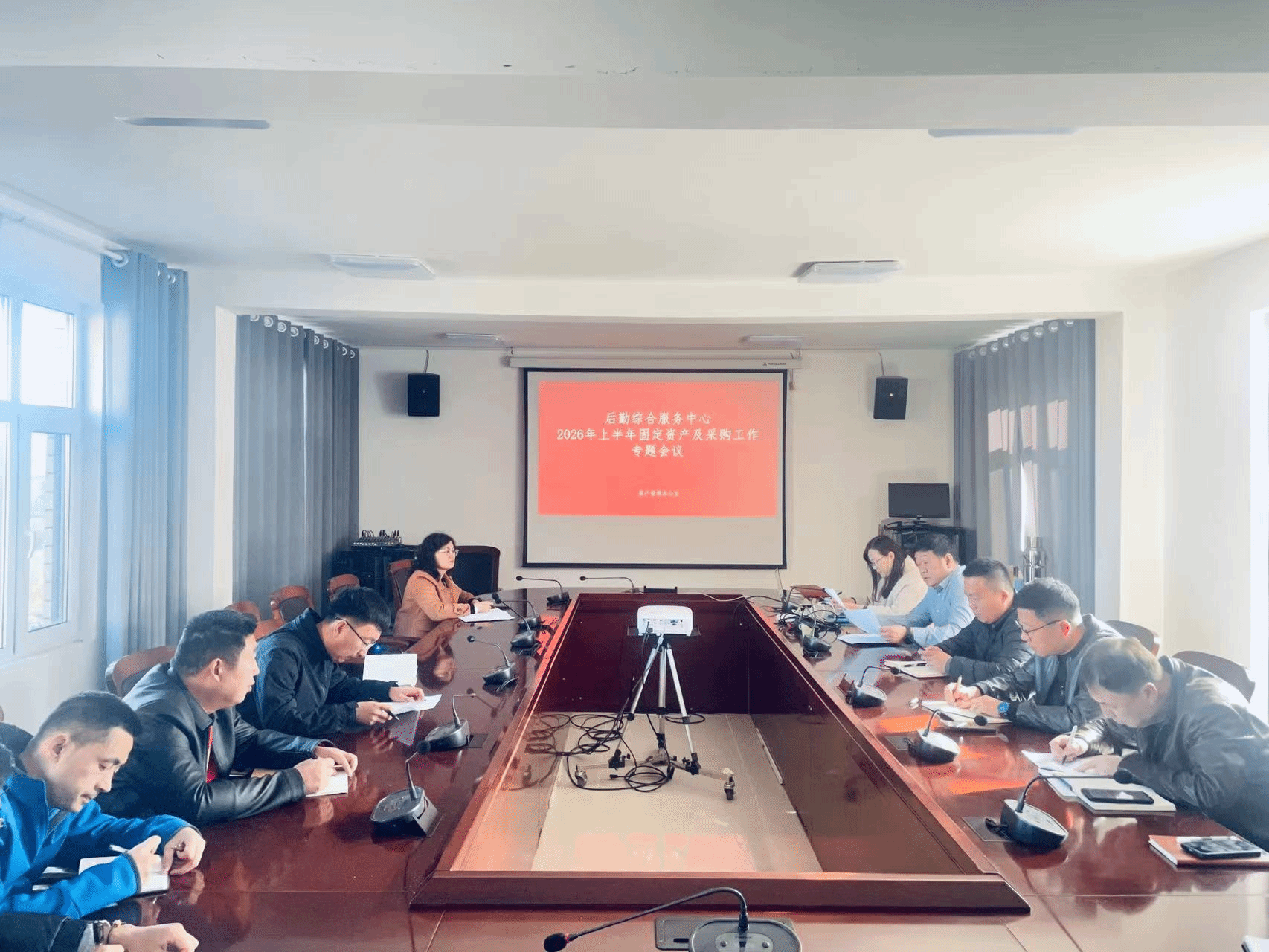 为确保后勤综合服务中心2026年上半年资产管理、采购工作的顺利开展,规范内部运行机制,增强资产管理的责任意识,资产管理办公室于2026年3月27日上午10:30在常平苑研讨室组织召开后勤综合服务中心2026年上半年固定资产和采购工作专题会议。会议由资产办主任冯忠诚主持,中心各部门主任、三级资产管理员及采购相关工作人员参会,中心副主任麦尔孜亚·玉苏普江出席此次会议。
